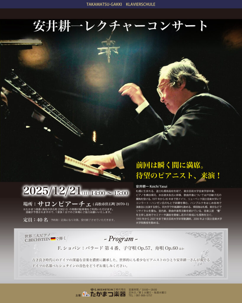 <満席御礼>安井耕一レクチャーコンサート 待望のピアニスト 来演!