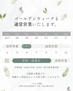 ゴールデンウィーク営業日のお知らせ