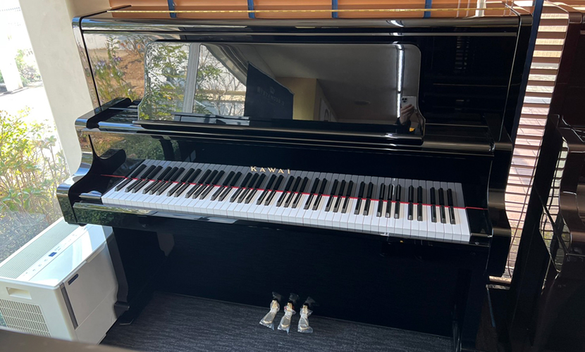 グランドピアノと同じ形状と機構の鍵盤蓋、譜面台を採用した高級モデルです。