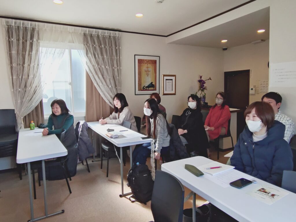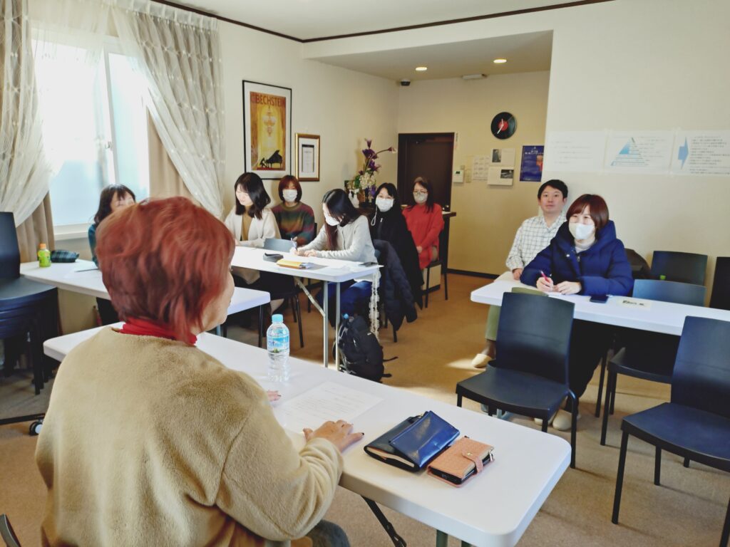お話の中で、子供を褒めて自信や自尊心を養う、というのは本当にその通りで、褒めて自信がついた生徒さんは、表情も変わり、演奏もビックリするほど変わることを私も経験しております。音楽が楽しいものであり、自分を表現できるもの、そしてそれが一生の自分の宝であることを、子供さんから大人の方まで、ピアノをされている方に気付いてもらえるような指導ができたらなぁと、改めて気付かせてもらえました。生徒さんがどうなっていきたいか?そして保護者の方が、どういうことを求めているか、その言葉の伝え方など、先生のお言葉がとても心に響く、講座となりました。そしてこんな素敵なことを、仕事としてできることに、誇りを持って、これからもニーズに応えられる指導をしていけたらと思っております。